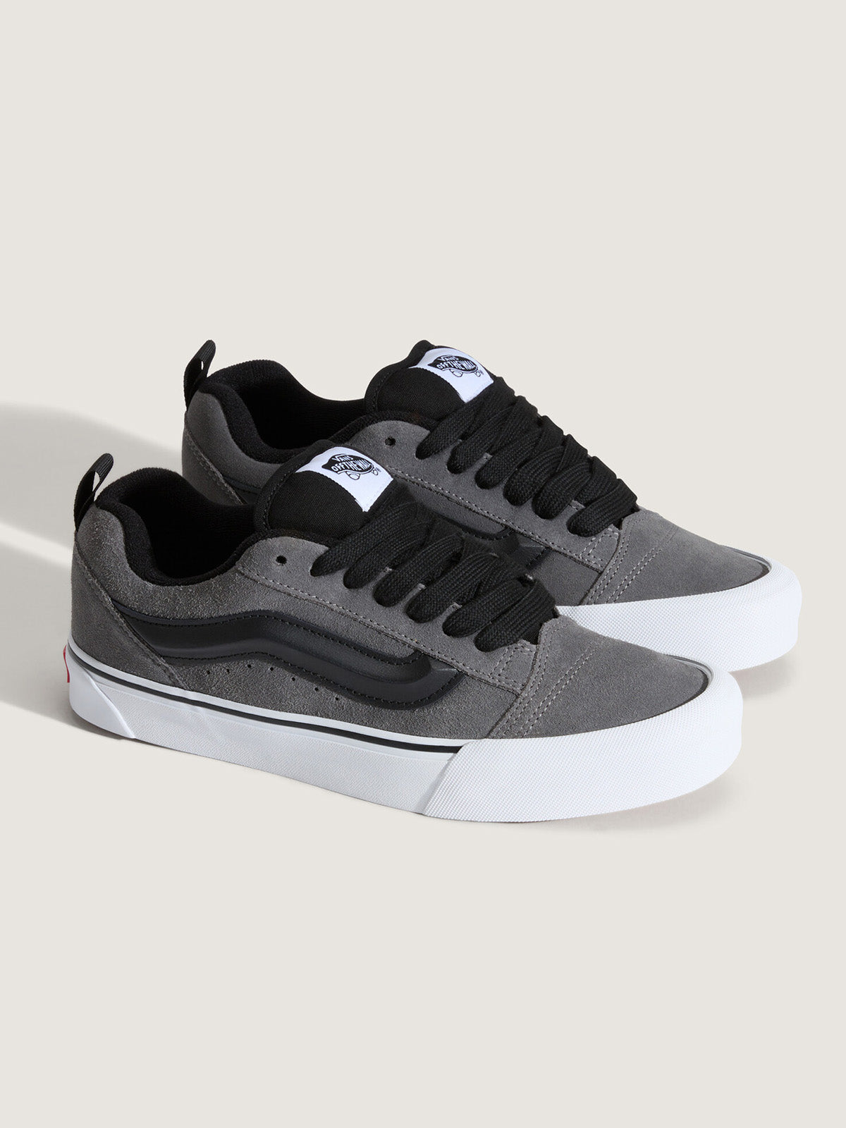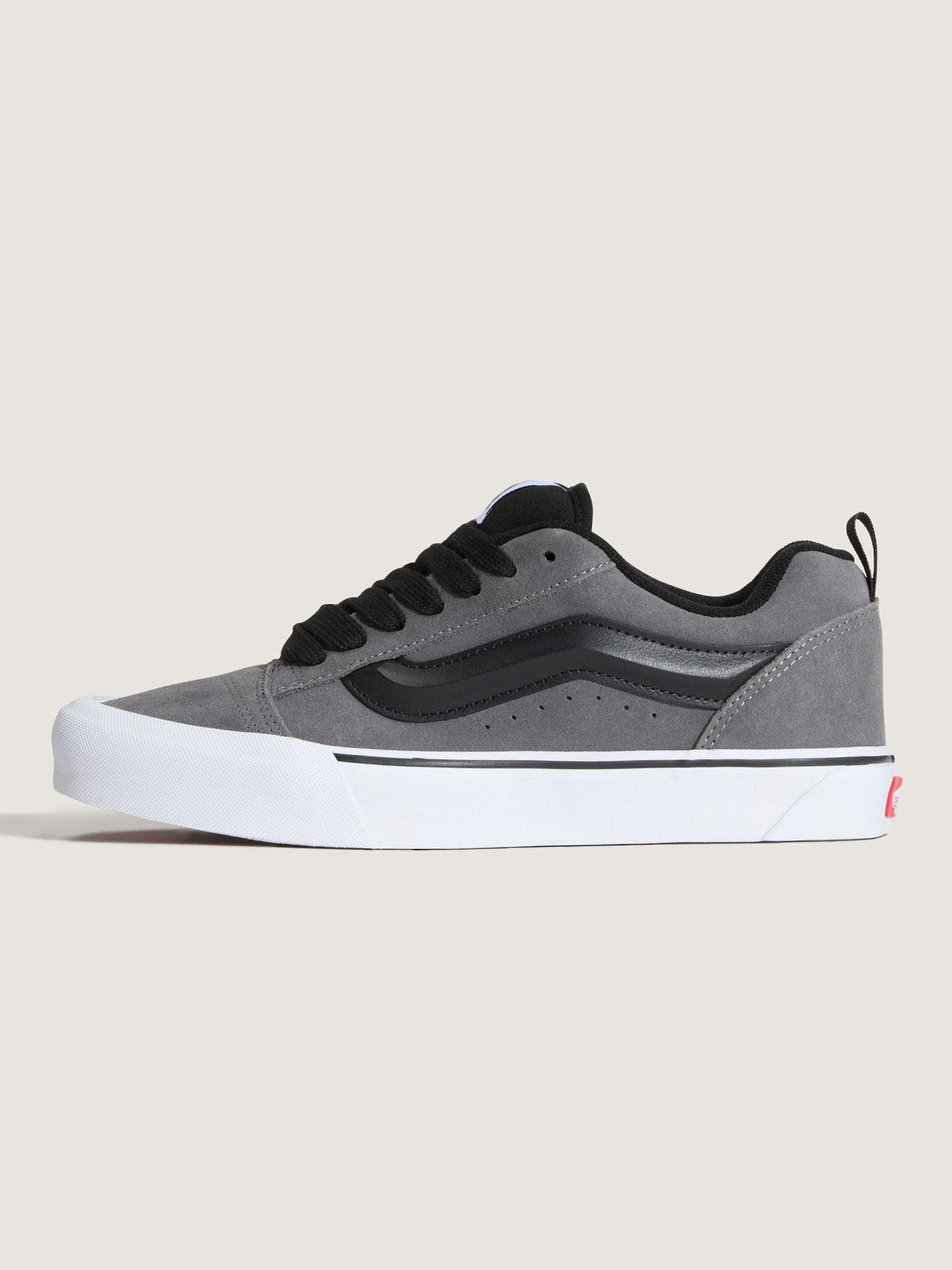 • Las Knu Skool son un modelo reeditado de los años 90, cuando las zapatillas de skate tenían un diseño con extra de acolchado. Esta silueta de caña baja, confeccionada con resistentes palas de gamuza, presenta un diseño con una gran lengüeta y un cuello acolchados, lo que le otorga un aspecto exagerado que contrasta con el modelo Old Skool original. Manteniendo la estética «Off The Wall», nuestra emblemática Sidestripe™ de Vans se ha reinventado como un molde de diamante acolchado en 3D que destaca por su aspecto ancho y grueso. La incorporación de trabillas en el talón facilita la puesta y la retirada.